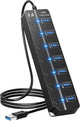 USB 3.0 Hub, 7 Port Powered USB Hub Expander Aluminum USB 3.0 Data Port hub with Universal 5V AC Adapter and Individual On/Off Switches USB Splitter for Laptop and PC(Black)